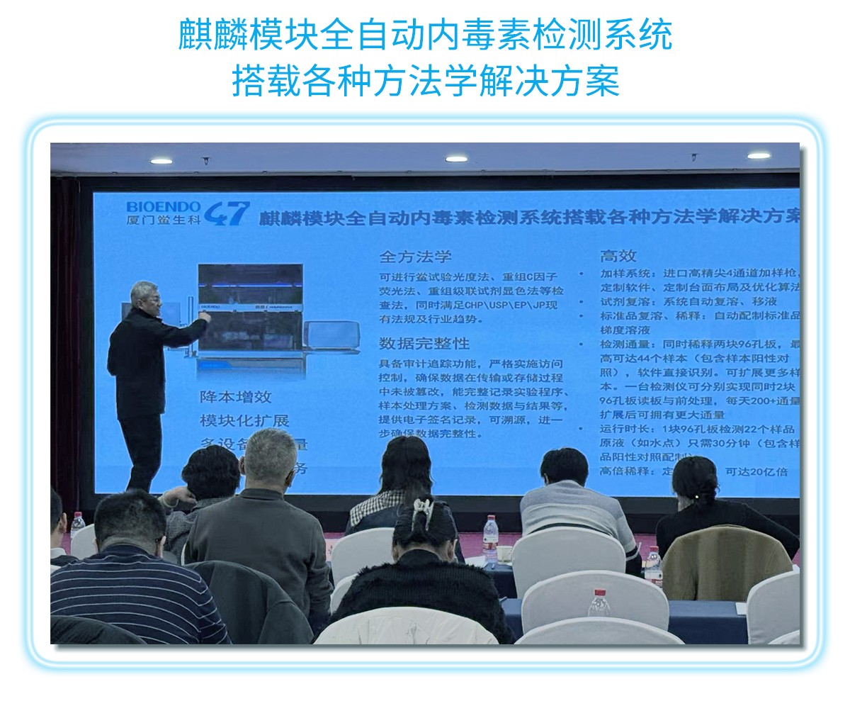 廈門(mén)鱟生科吳尚毅董事長(zhǎng)在會(huì)議上介紹了“智檢未來(lái)+重組替代”的可持續(xù)發(fā)展內(nèi)毒素檢測(cè)全面解決方案報(bào)告。展示了廈門(mén)鱟生科47年專(zhuān)注鱟試劑、內(nèi)毒素檢測(cè)領(lǐng)域的發(fā)展歷程及成果,介紹了我司檢測(cè)試劑+檢測(cè)設(shè)備+專(zhuān)業(yè)軟件+重組試劑+全自動(dòng)智能機(jī)器人+體系驗(yàn)證全面解決方案的產(chǎn)業(yè)化升級(jí),從傳統(tǒng)鱟試劑轉(zhuǎn)型升級(jí)為AI+合成生物學(xué)領(lǐng)先企業(yè),保護(hù)鱟資源,實(shí)現(xiàn)可持續(xù)發(fā)展的戰(zhàn)略規(guī)劃,努力建設(shè)符合國(guó)家發(fā)展政策的高質(zhì)量新質(zhì)生產(chǎn)力企業(yè),助力我國(guó)醫(yī)藥行業(yè)發(fā)展。